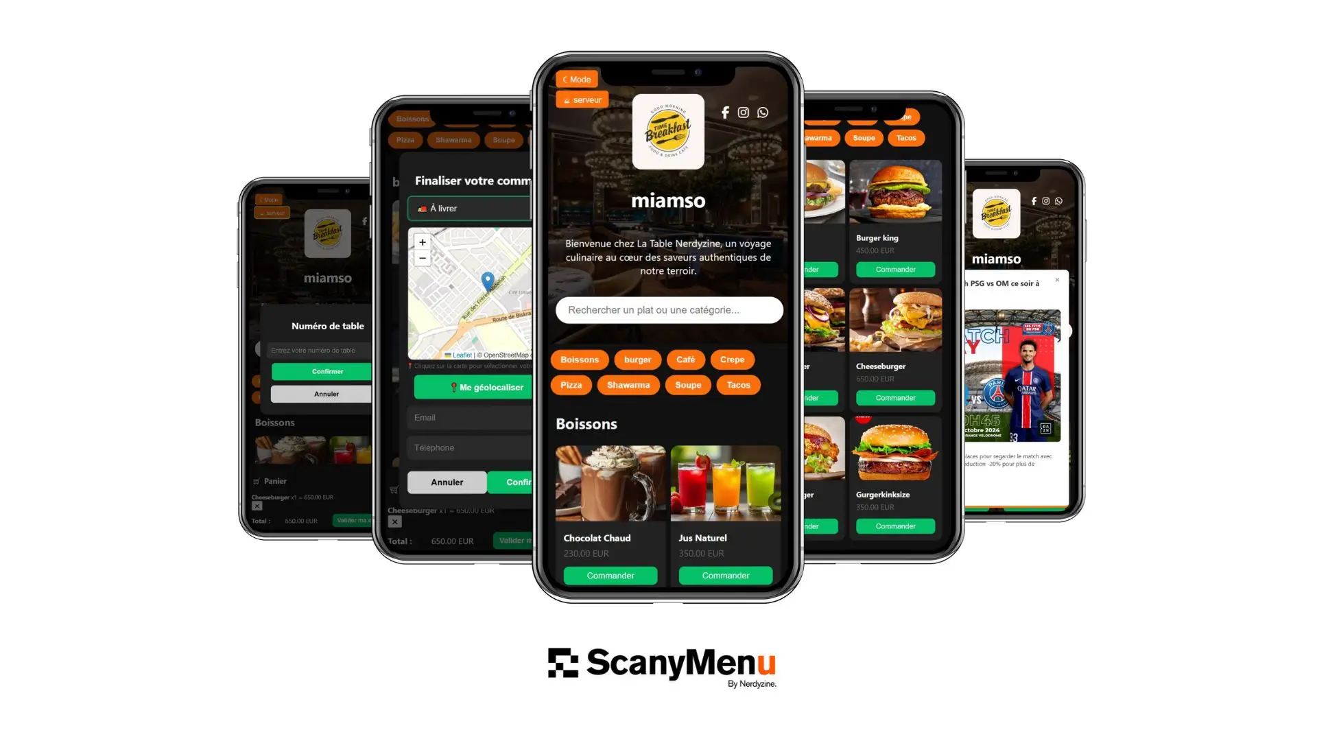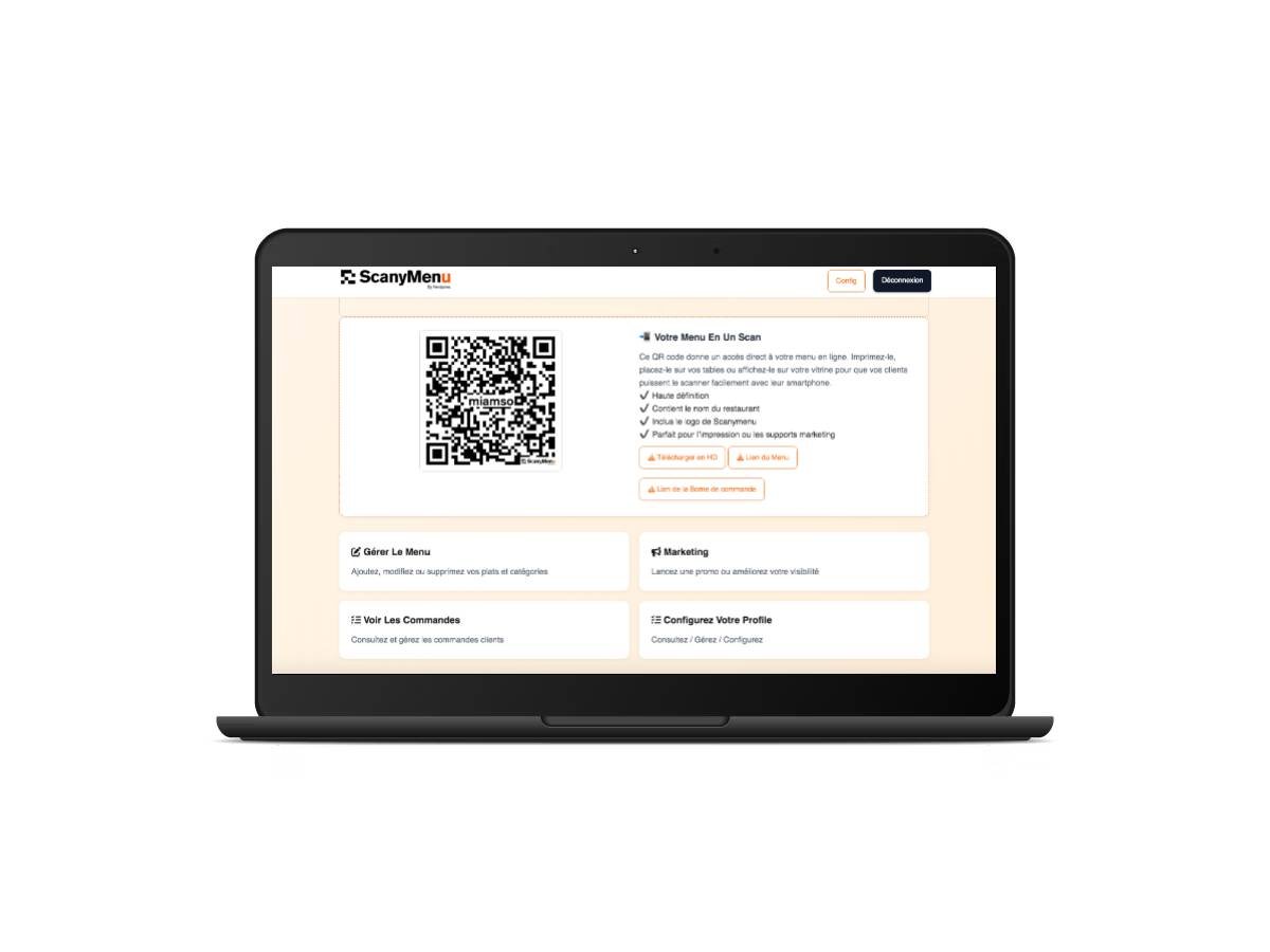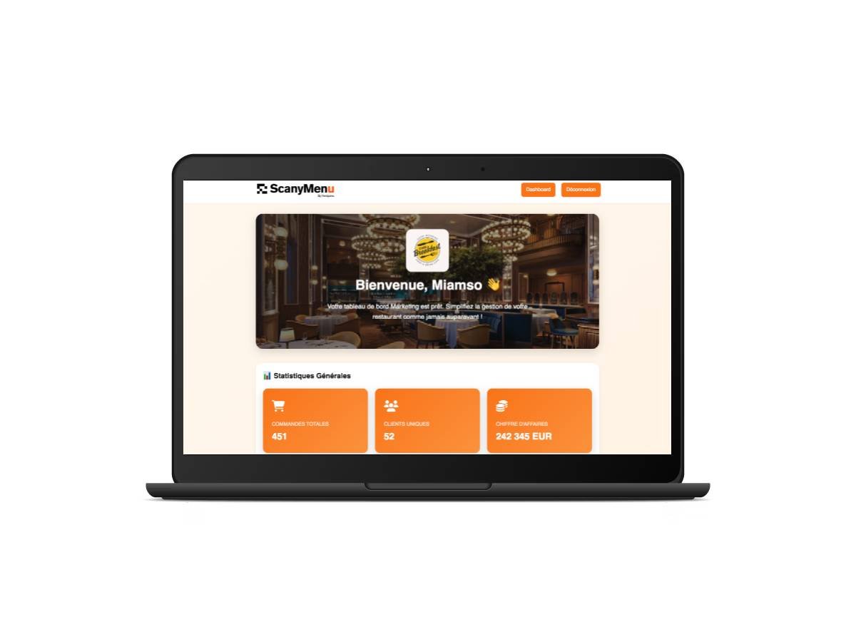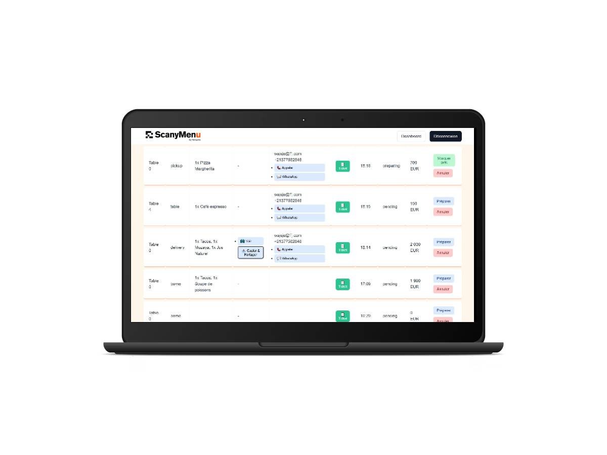 ScanyMenu permet à vos clients de commander en 3 clics, d’appeler un serveur et de payer plus vite. Vous suivez votre CA en temps réel et optimisez votre carte sans effort.